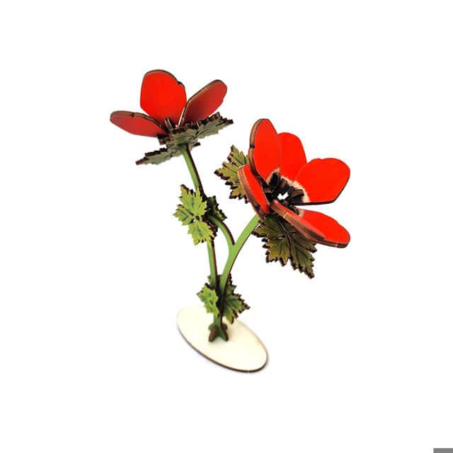 The Cyclamen model stands independently on a solid wooden base, making it a charming accent for shelves, desks, or display spaces. Its soft colors and organic materials bring a calm, natural atmosphere indoors — without maintenance.